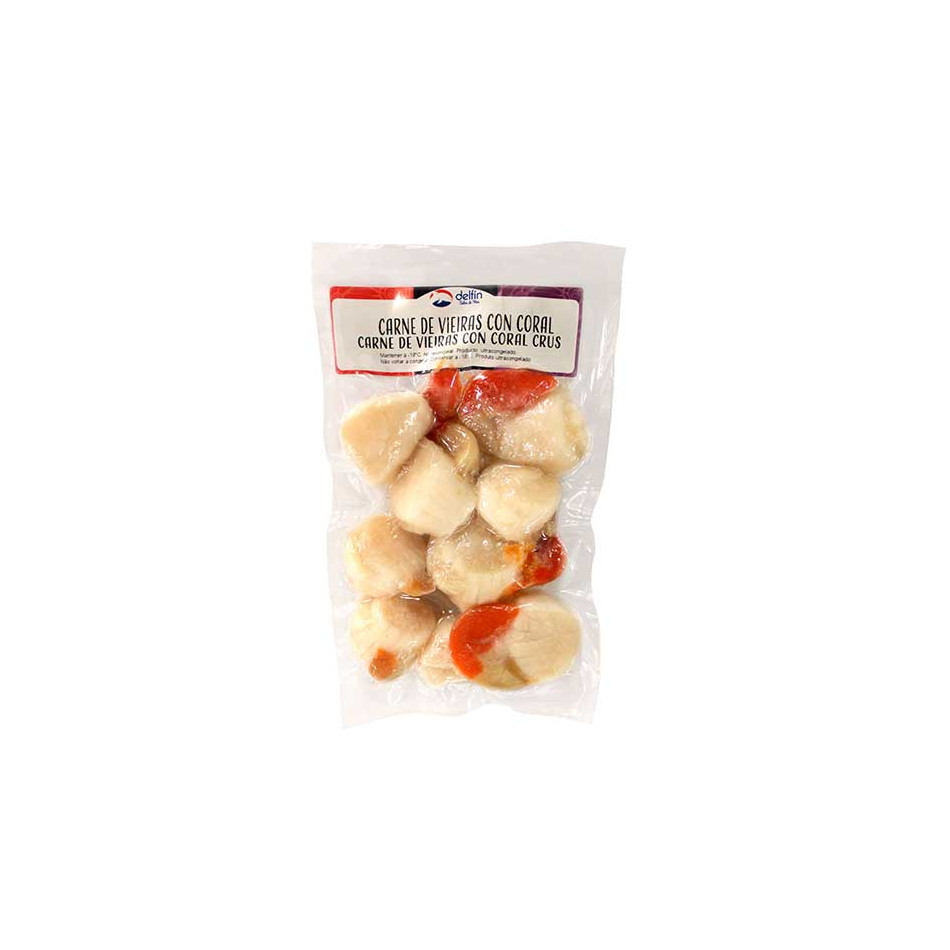 Carne de Vieiras con coral . ALÉRGENOS: CONTIENE: MOLUSCOS. TRAZAS: CRUSTÁCEOS, SULFITOS, PESCADO, MOLUSCOS, GLUTEN, SOJA, LACTOSA, APIO, MOSTAZA Y HUEVO.