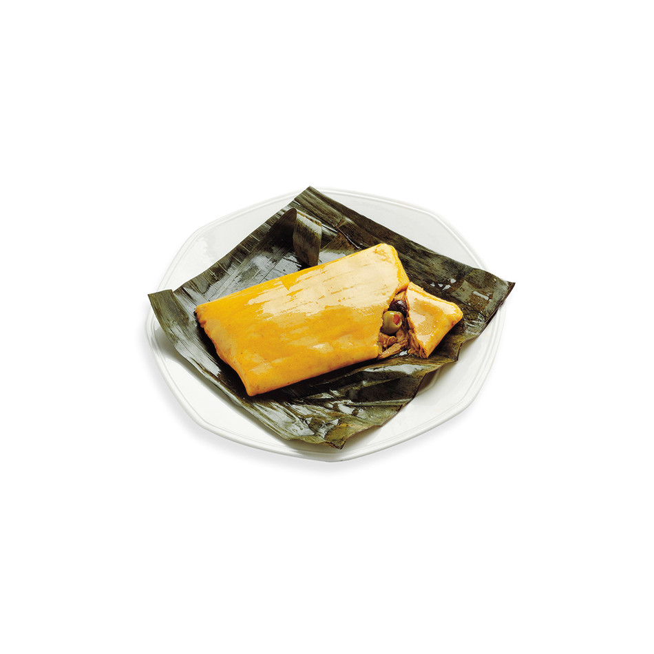 Masa hecha con harina de maíz, carne de vacuno, pollo, cerdo, aceitunas, alcaparras pasas, cebolla, ajo, pimiento, puerro, especias, sal, vino, vinagre. ALÉRGENOS: PUEDE CONTENER TRAZAS DE LECHE Y SULFITOS