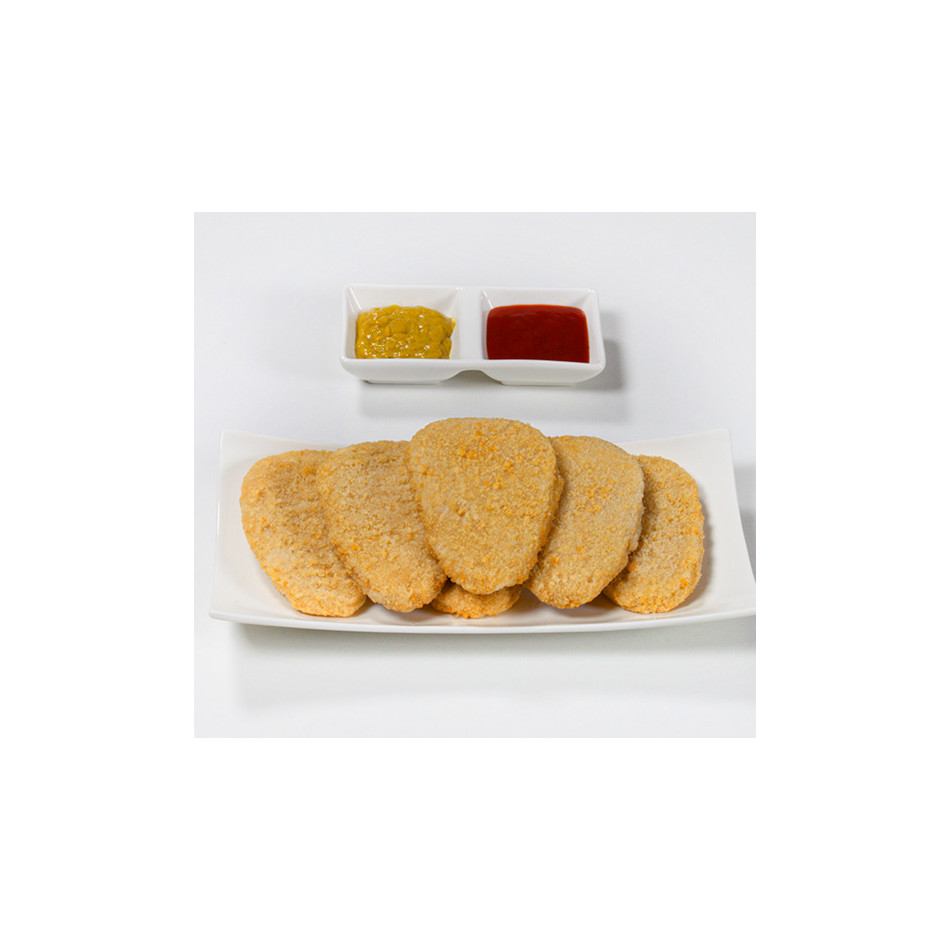 carne de pollo 33%, pan rallado: harina de TRIGO, agua, sal, levadura,