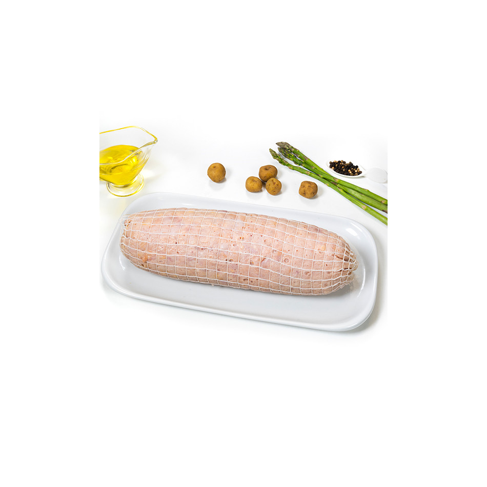 Carne de muslo de pavo (70%), pollo,proteina de soja,sal,azúcar, carragenatos( E-407),tripolifosfato(E-451),goma garrofin (E- 410), goma xantana (E-415),citrato sodico( E-331),ascorbato sodico(E-301),nitrito sodico (E-250),potenciador del sabor(glutamato monosodico (E-621))y especias naturales(pimienta). ALÉRGENOS: CONTIENE: SOJA.
