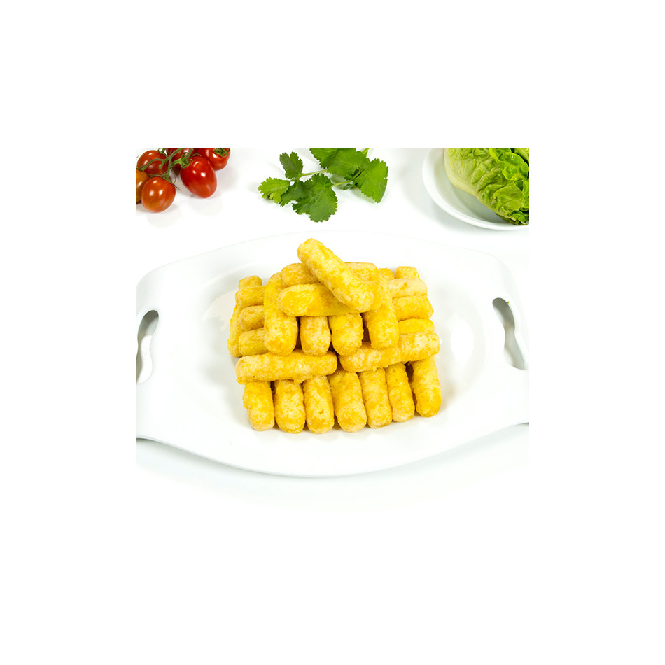 Abadejo de Alaska (35%), rebozado (65%): agua, pan rallado, harina de trigo, aceide de girasol, almidón, sal, gasificantes (E-450, E-500), corrector de acidez (E-330), zumo de limón concentrado, lactosa, espesante (E-417), potenciador del sabor (E-621), ajo en polvo y colorante (E-101) ALÉRGENOS: PESCADO, GLUTEN Y LACTOSA. PUEDE CONTENER TRAZAS DE LECHE, MOLUSCOS, CRUSTÁCEOS, HUEVO, SOJA Y MOSTAZA.